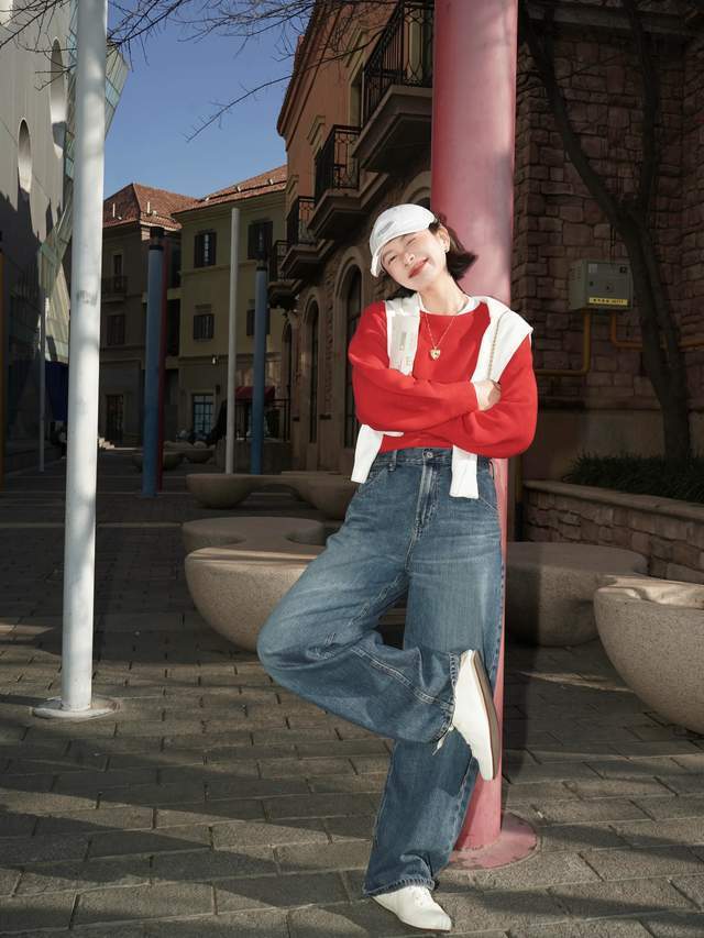 Tips②:红色毛衣搭配牛仔裤,让你朝气高贵