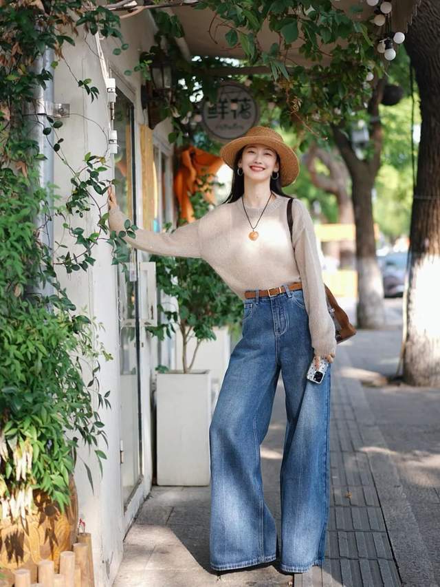 在南边城市,白昼出太阳的技巧,天气很情切,根底就莫得必要穿的安妥外衣,平直弃取一件软糯的浅地面色系圆领毛衣,搭配上一条高腰收腰的牛仔阔腿裤,再戴上一款凉帽,外出旅游拍照,这么的打扮就很出片。
