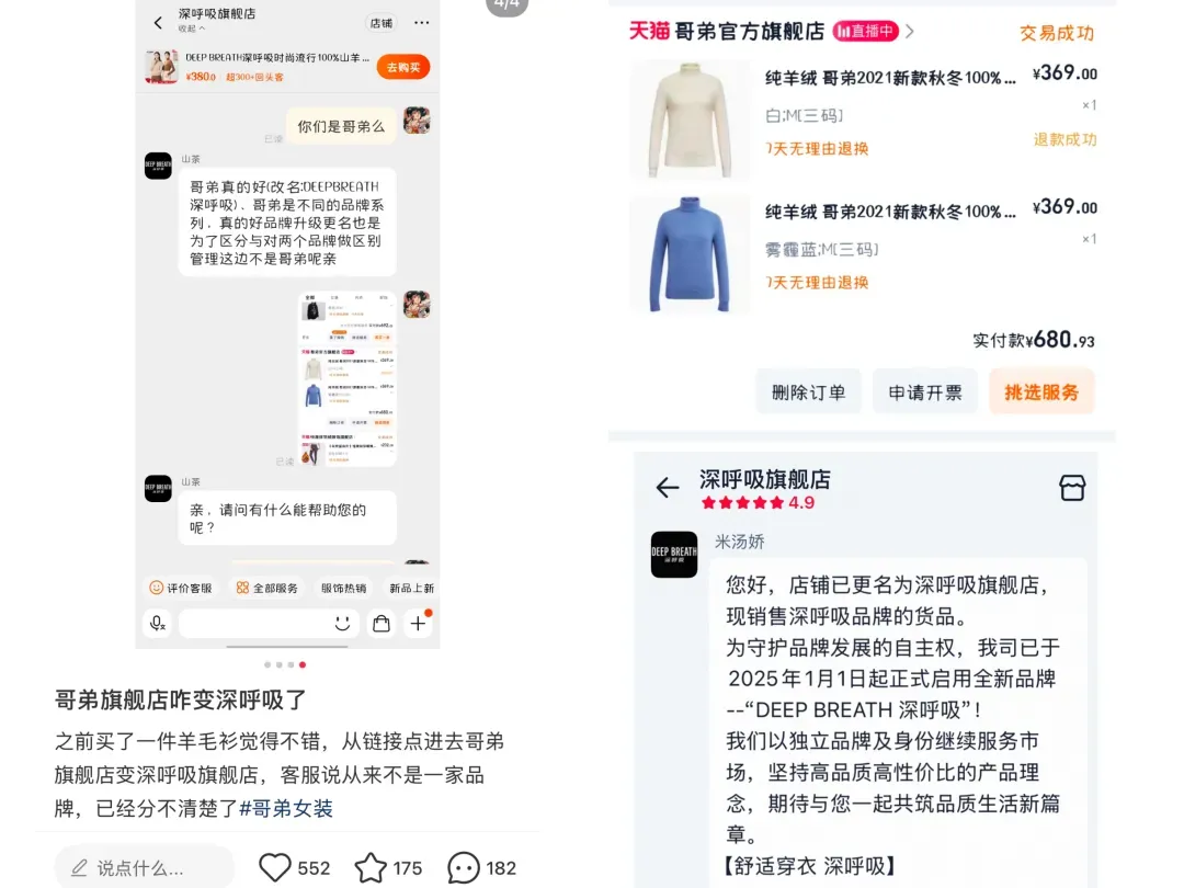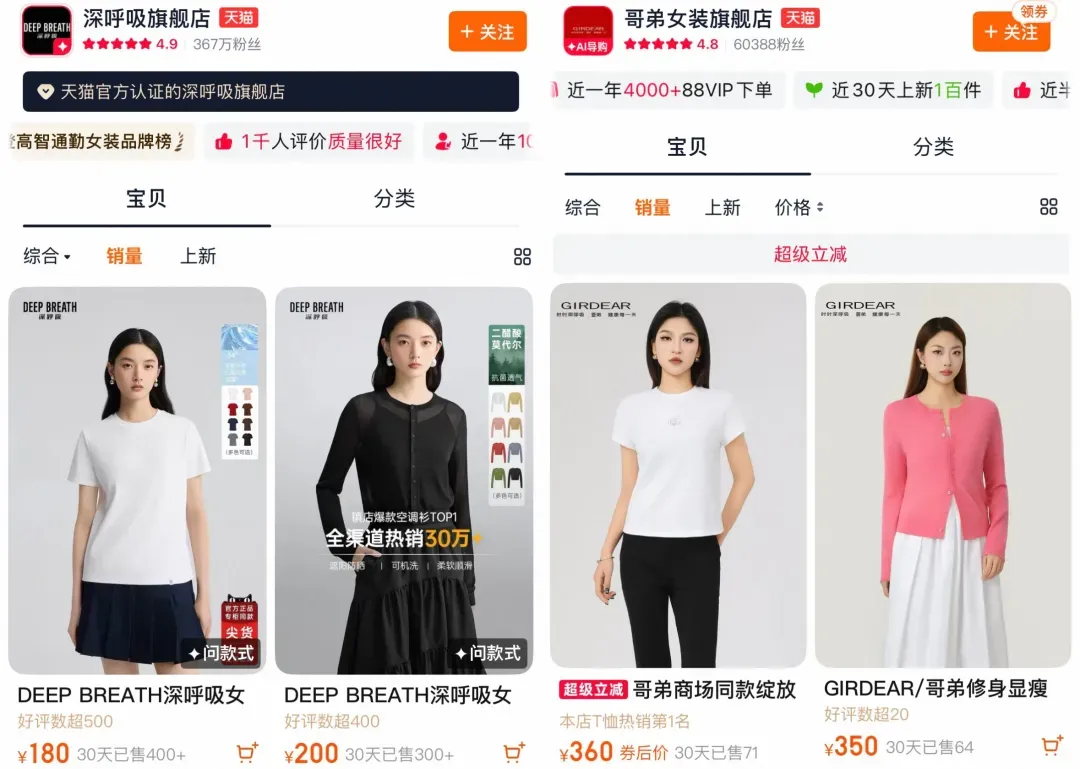 图源:哥弟抖音官旗(左)、深呼吸天猫官旗(右)