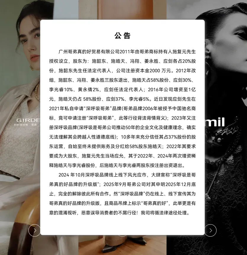 哥弟公司公告 | 图源:哥弟官网